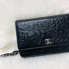Camellia Embossed WOC Clutch Bag in Black Lambskin with SHW
