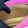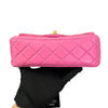 This is an authentic Chanel CC Pearl Crush Mini Rectangular Flap Lambskin in Pink. The mini crossbody is made of quilted lambskin leather in pink. It boasts a matte gold chain link shoulder strap and a classic gold CC turn lock. When you open the flap, you’ll find a gold leather interior with zipper and patch pockets.