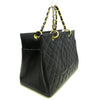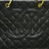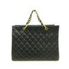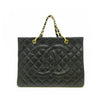 This Chanel Vintage Quilted Caviar CC Tote has been constructed with black caviar quilted leather, and showcases a large CC logo at front. It features double gold-tone chain handles and roomy interior.