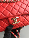Stand out and turn heads with this red Chanel Jumbo Double Flap. This version of this bag is considered a collector piece as it is difficult to get this bag in the color of true red.