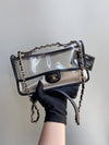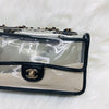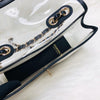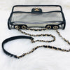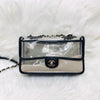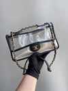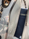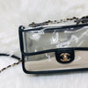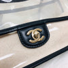 The Chanel transparent PVC flap handbag in black lambksin leather trim and light gold-tone hardware is a super rare and highly sought-after fashion piece.