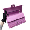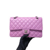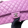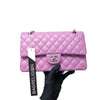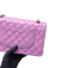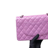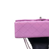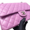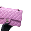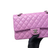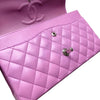 This Chanel Classic Double Flap Medium bag is crafted in diamond-quilted soft pink lambskin leather featuring a CC turn-lock and chain in silver hardware. The interior features the signature double flap as well as two front pockets and a large main compartment to ensure all of your essentials stay neat and tidy. This sought after beauty won't last long, so don't miss your chance to own her.