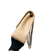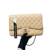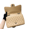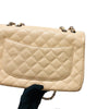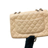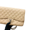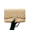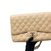 This Chanel Classic Jumbo Flap is as Iconic as a bag can get. It features the durable diamond-quilted Caviar Leather adorned with a silver hardware combo. Rare to find in white. The interior is the perfect size to fit all of your daily needs and essentials with one large compartment and two smaller pockets.