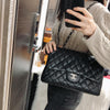This Chanel Classic Jumbo Single Flap is as Iconic as a bag can get. It features the durable diamond-quilted leather adorned with silver hardware combo. The interior is the perfect size to fit all of your daily needs and essentials with one large compartment and two smaller pockets.