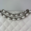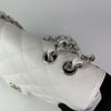 This Chanel Classic Jumbo Flap is as Iconic as a bag can get. It features the durable diamond-quilted Caviar Leather adorned with a silver hardware combo. Rare to find in white. The interior is the perfect size to fit all of your daily needs and essentials with one large compartment and two smaller pockets.