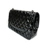 Double Flap Jumbo Quilted Patent Bag in Black with SHW