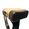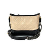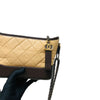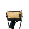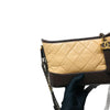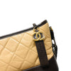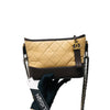 This Chanel Gabrielle Small Hobo Bag has ben constructed with aged calfksin in light beige and dark brown. It features gold-tone hardware and classic diamond quilting. The spacious fabric interior has a zipper and patch pockets.