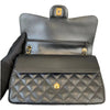 This Chanel Jumbo features a double flap enclosure to maximize space and increase security for your items. Adorned with an iconic silver-tone metal CC turn-lock closure, the Jumbo is a nod to Chanel's classic chic style.