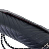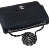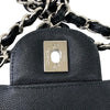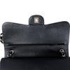 This classic jumbo flap bag is crafted of chevron quilted caviar leather in black. It features leather threaded polished silver chain link shoulder straps, an exterior rear flat pocket and a front flap with a silver CC turn lock. This opens to a second flap and an interior with flat pockets. This is a perfect shoulder bag for all occasions, from Chanel!