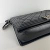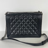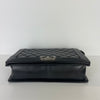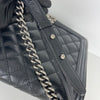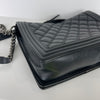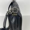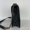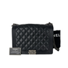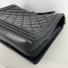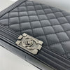 This Chanel Large Le Boy Bag comes in a classic shade of black and is a staple in any fashionistas wardrobe. Featuring diamond-quilted Calfskin leather with a cc clasp closure in Ruthenium Hardware as well as a chain strap in the same hardware, this classic piece will never go out of style. With more than enough room for all of your essentials, this bag can seamlessly go from daytime business to evening party.