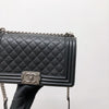 Authentic Chanel Old Medium Boy Bag in Caviar leather.