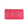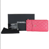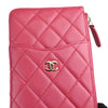 This is an authentic Chanel Long Wallet Phone Holder Lambskin in Pink with Gold Hardware. Crafted from lambskin leather and features phone holder pocket on one side pockets for cards on the other side and the top zipper opens to matching interior.