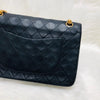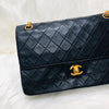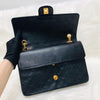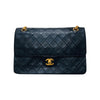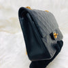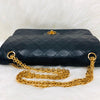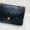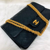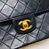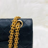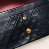 This Chanel Mademoiselle Double Flap is crafted from soft black diamond quilted lambskin leather and is surely a rare Chanel Vintage find. This double flap bag is a must-have for any Vintage Chanel collection. It has a 24K coated yellow gold chain link shoulder strap and a CC turn lock. This bag is rare as it has a Reissue chain.