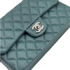 This Chanel Classic Flap is as Iconic as a bag can get. It features the durable green diamond-quilted Caviar Leather adorned with a silver hardware combo. It also features the leather and silver chain link shoulder strap which can be worn long or short. The interior is the perfect size to fit all of your daily needs and essentials with one large compartment and two smaller pockets in the front. Invest in this classic statement piece, you won't regret it!