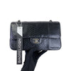 This gorgeous Medium Chanel Double Flap Python in Black features a woven strap, an exterior back slip pocket and silver-toned hardware. It has a double flap and a frontal silver CC turn-lock closure. Make this rare investment bag yours today.