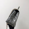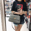 This Chanel Medium Coco Handle Flap Grey bag is a unique and elegant piece. It features a Caviar leather exterior, and a leather top handle.  This beauty can be worn as a top handle, a crossbody, or a shoulder bag.