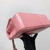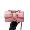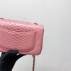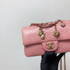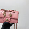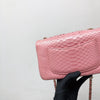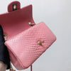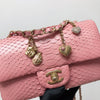 This beautifully crafted Python Mini Charm Flap Bag features a front flap with signature CC turn-lock closure, with half-moon back pocket. Exquisitely constructed in python leather throughout, this bag comes with an adjustable shoulder strap that features interwoven aged gold-tone chain link and pink leather. The interior is lined in pink leather and offers a zipper pocket and a slip pocket.
