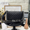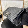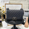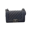 This Chanel Boy in Quilted Caviar is a rare find! Its small size and classic colour combination makes it the most perfect collectable item for any Chanel addict. The interior features a fabric lining with a single interior pocket. The strap is a combination of leather and RHW, making it adjustable to your height and comfort. Our advice: don't hesitate on this one!