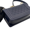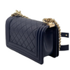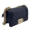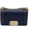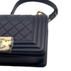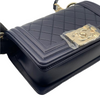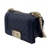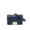 This Small Chanel Boy in quilted lambskin leather is a rare find. Its small size and colour combination make it the most perfect collectible item for any Chanel collector. The interior features a fabric lining with a single interior pocket. The strap is a combination of leather and gold hardware, making it adjustable to your height and comfort. Our advice: don't hesitate on this one!