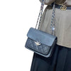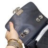This Chanel CC Box Flap is a seasonal bag from Chanel's 2017 collection. It is beautifully crafted with classic grained calfskin leather that is timeless and stylish and accentuated with the signature CC Logo clasp in silver and black hardware. It features a silver leather interlaced chain shoulder strap that can be worn long or short. This bag features enough room for all your essentials as well as a side zipper pocket. Be practical and yet stylish in Chanel!