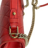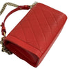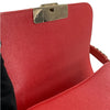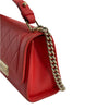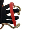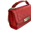 This Chanel Label Click Flap Bag is crafted from red quilted calfskin. Versatile and practical to use everyday with its chained shoulder strap, which makes it easier to carry it by the shoulder and a top handle for effortless hand carrying. The flap comes with a gold toned push-lock closure. Inside the bag is a tan fabric interior and a side zip pocket.