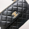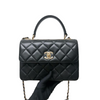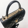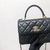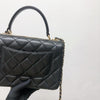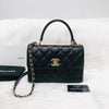 This Chanel Small Trendy CC may be trendy, but it's also a timeless classic. On the exterior, you get the gorgeous double C logo, and Chanel hardware detailing across the top of the bag. On the interior, you have 3 compartments for maximum organization. This top handle bag comes with the convenience of a detachable strap for convenient wear.