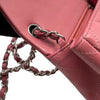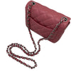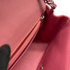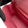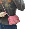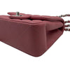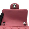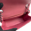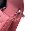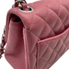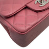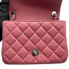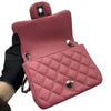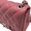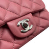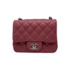This is an authentic Chanel Square Flap Mini Lambskin Quilted in Pink. This shoulder bag is made of lambskin leather. The bag features a waist length polished silver chain link leather threaded shoulder strap and a silver plated Chanel CC turn lock. This opens to a matching leather interior with zipper and patch pockets.