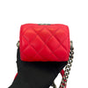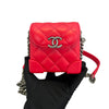This is an authentic Chanel Trunk-Like Mini Shoulder Lambskin in Red. It is an exquisite mini bag crafted in diamond quilting lambskin leather with the CC logo and a boy-like chain. The front flap opens to a matching interior.
