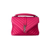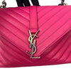 This versatile college bag features the iconic YSL logo on the front and has been marvelously designed with chevron quilted leather. The bag features a long chain strap, a short satchel handle, and a slip pocket. The interior is perfect for holding all your essentials.
