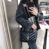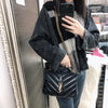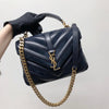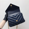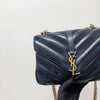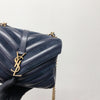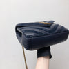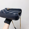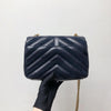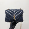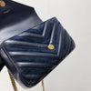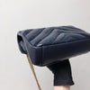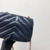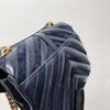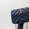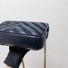 Chevron Quilted Leather Monogram Medium College Bag Navy Blue