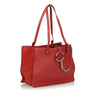 The Faye Tote features a leather body, flat leather straps, gold-tone hardware, open top with magnetic closure, and interior zip pocket.