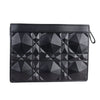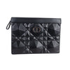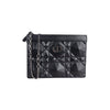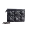 This is an authentic Christian Dior Caro Zipped Pouch with Chain Calfskin Macrocannage Diamond in Black. This stylish clutch is made of calfskin leather. The bag features silver chain strap, "CD" on the front and at the zipper pull. The zipper opens to a partitioned black leather interior with card slots.