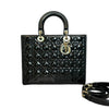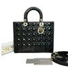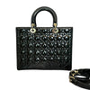 This is an authentic Christian Dior Lady Dior Large Patent Cannage in Black. This stylish tote is crafted of patent leather. The shoulder bag features sturdy reinforced patent leather top handles and an optional shoulder strap with polished gold hardware including hanging Dior initials logo charms. The top flap opens to a suede interior with a zipper pocket.