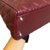 This is an authentic Christian Dior Lady Dior Medium Lambskin Cannage in Burgundy. This stylish tote is crafted of geometric-quilted lambskin leather. The handbag features reinforced leather top handles, and an optional shoulder strap with silver hardware. The top zipper opens to a grey monogram jacquard fabric interior with a zipper pocket.