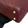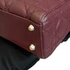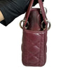 This is an authentic Christian Dior Lady Dior Mini Crystal Lambskin in Burgundy. This stylish tote features quilted lambskin leather, leather top handles, a detachable crystal-embellished shoulder strap, and silver hardware with Dior logo charms. The top opens to a leather interior with a zipper pocket.