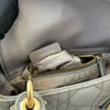 This is an authentic Christian Dior Mini Lady Dior Lambskin in Grey. It’s made of lambskin leather. The bag features leather top handles, a leather shoulder strap along with a charming “Dior” letters pendant. The top is secured by an interior flap, and the bag opens to reveal a grey Dior logo-jacquard fabric with a zipper pocket.