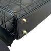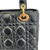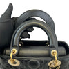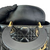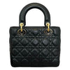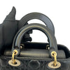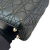This is an authentic Christian Dior My Dior Lady Dior Small Lambskin Quilted in Black. This stylish bag is made of black cannage quilted lambskin leather and features a wide leather shoulder strap, three strap charms, and strong top handles with gold hardware and Dior logo charms. The top flap reveals a red Dior monogram interior with a zipper pocket.