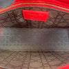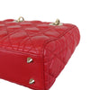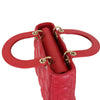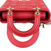 The Lucky Badges My Lady Dior Small is a feminine, stylish tote crafted of the hallmark cannage quilted lambskin leather in red The rolled reinforced leather handles provide sturdy carrying, while the embellished strap adds versatility and comfort. The bag features gold hardware and a top inner flap that opens to a classy interior in black Dior monogram jacquard fabric with a zip pocket. The Charms can be interchanged with newly chosen charms sold separately at the Dior boutique.