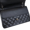 This Chanel Classic Flap is as Iconic as a bag can get. It features the durable black diamond-quilted Caviar Leather adorned with a silver hardware combo. It also features the leather and silver chain link shoulder strap which can be worn long or short. The interior is the perfect size to fit all of your daily needs and essentials with one large compartment and two smaller pockets in the front. Slay in this brand new iconic and timeless piece that's sure to grab attention, only from Chanel!