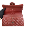 Dress your everyday essentials up with classic glamour in this Chanel Classic Double Flap Caviar Leather Medium handbag. The hands-free strap will have you feeling free and easy, while the classic Chanel quilting and double c logo shows the world you do not settle for anything less than the best. Featuring flat pockets on the front and back plus two interior compartments, you’ll stay neat and tidy. Add a statement to your outfit with this amazing find.