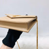 The interior is made of fabric lining with a patch pocket. In beige leather with gold hardware, this is truly a classic piece that will stand the test of time.