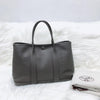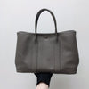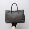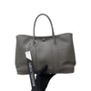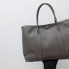 Size 30 Garden Party in Epsom leather and Etain colour. This bag features a palladium hardware Clou de Selle snap button closure that opens up with expandable sides.