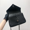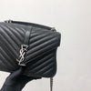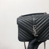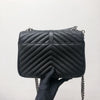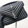This Yves Saint Laurent Medium College bag features quilted lambskin leather with the signature interlaced YSL Logo in black-toned hardware on the front flap. It also has a top handle as well as a removable chain and leather strap that allows both shoulder and crossbody wear. The interior contains two compartments with a zippered pouch and one card slot. With this chic yet striking bag, you can add more presence to your already stylish outfit.