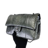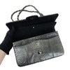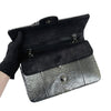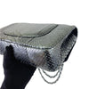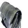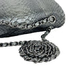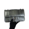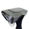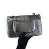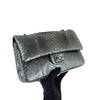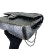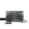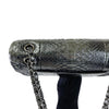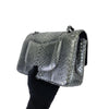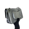 This gorgeous Medium Chanel Double Flap Python in Metallic Grey features a woven strap, an exterior back slip pocket and silver-toned hardware. It has a double flap and a frontal silver CC turn-lock closure. Make this exotic investment bag yours today.