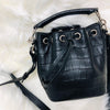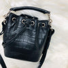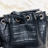 Crocodile Embossed Calfskin Leather Emmanuelle Bucket Bag Medium Black