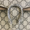 This bag is chic, petite, and ready to eat. The double tiger head shows the world you’re not someone to be meddled with, and Gucci’s classic double g print showcases your impeccable taste in style. More than just a pretty bag, you have an interior zipped compartment, flap pocket, and pin closure to keep your essentials secure. As usual, Gucci packs a lot of style in a small space!