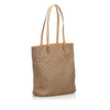 Dior Dior Oblique Canvas Tote Bag Brown. This tote bag features a canvas body with leather trim, an exterior slip pocket, flat leather straps, an open top, and an interior zip pocket.
