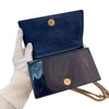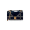 The Dior Diorama WOC in Patent Blue with Gold Hardware is a stylish and practical wallet on chain. It features a glossy finish in blue patent leather, and stuffed gold-tone accents.