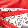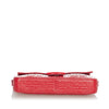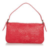 Fendi Embossed Leather Mamma Baguette Red. This baguette features an embossed leather body, a flat shoulder strap, a front flap with magnetic closure, and an interior zip pocket.