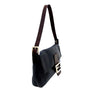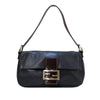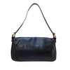 Fendi Leather Baguette Black. This baguette features a leather body, a flat leather strap, a top flap with a flat strap and magnetic closure, and an interior zip pocket.